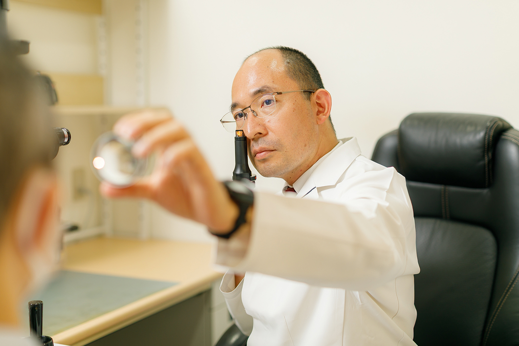 院長は大学病院・国立がん研究センター中央病院での豊富な診療経験を持ち、一般眼科から専門的な疾患まで、幅広く対応しています。また、初めてコンタクトレンズを使う方にもわかりやすく、安心してご利用いただけるようサポートしています。お子さまからご高齢の方まで、目の不調やお悩みがあれば、ぜひ一度ご相談ください。